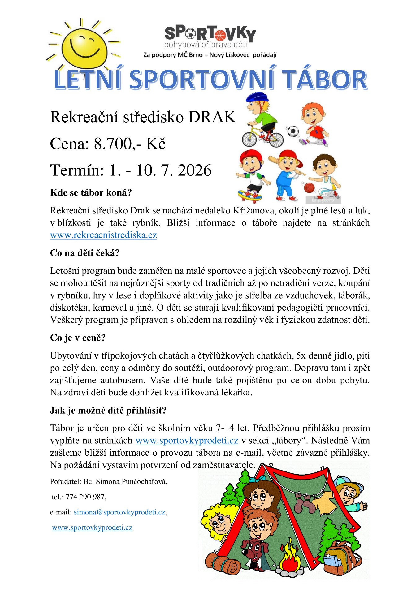 ZÁVAZNÁ PŘIHLÁŠKA NA LETNÍ POBYTOVÝ SPORTOVNÍ TÁBOR 2026